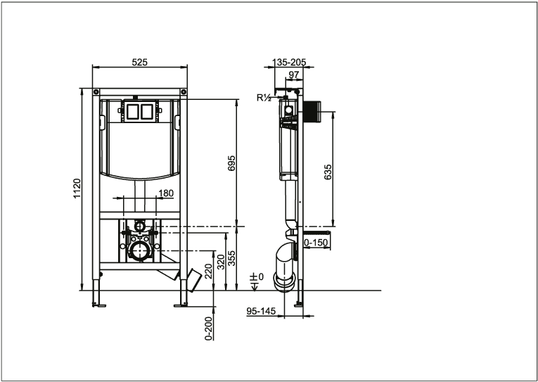 Villeroy & Boch ViConnect隐形水箱安装系统 座厕组件,用于干砌墙结构,525 x 1120 x 135 mm
