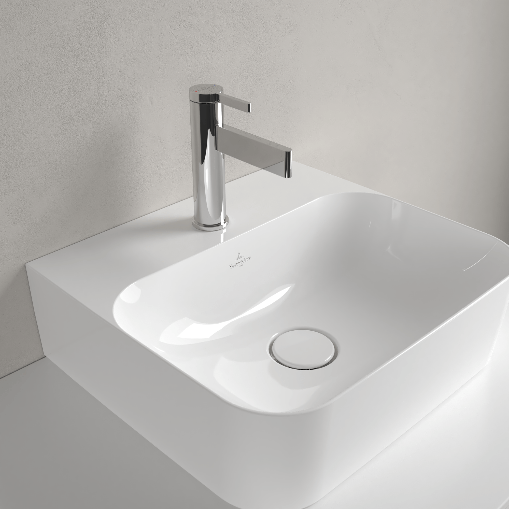 Villeroy & Boch 福朗 洗手盆, 430 x 390 x 140 mm, 白色 CeramicPlus | 易洁釉面, 有隐藏式溢水孔, 抛光