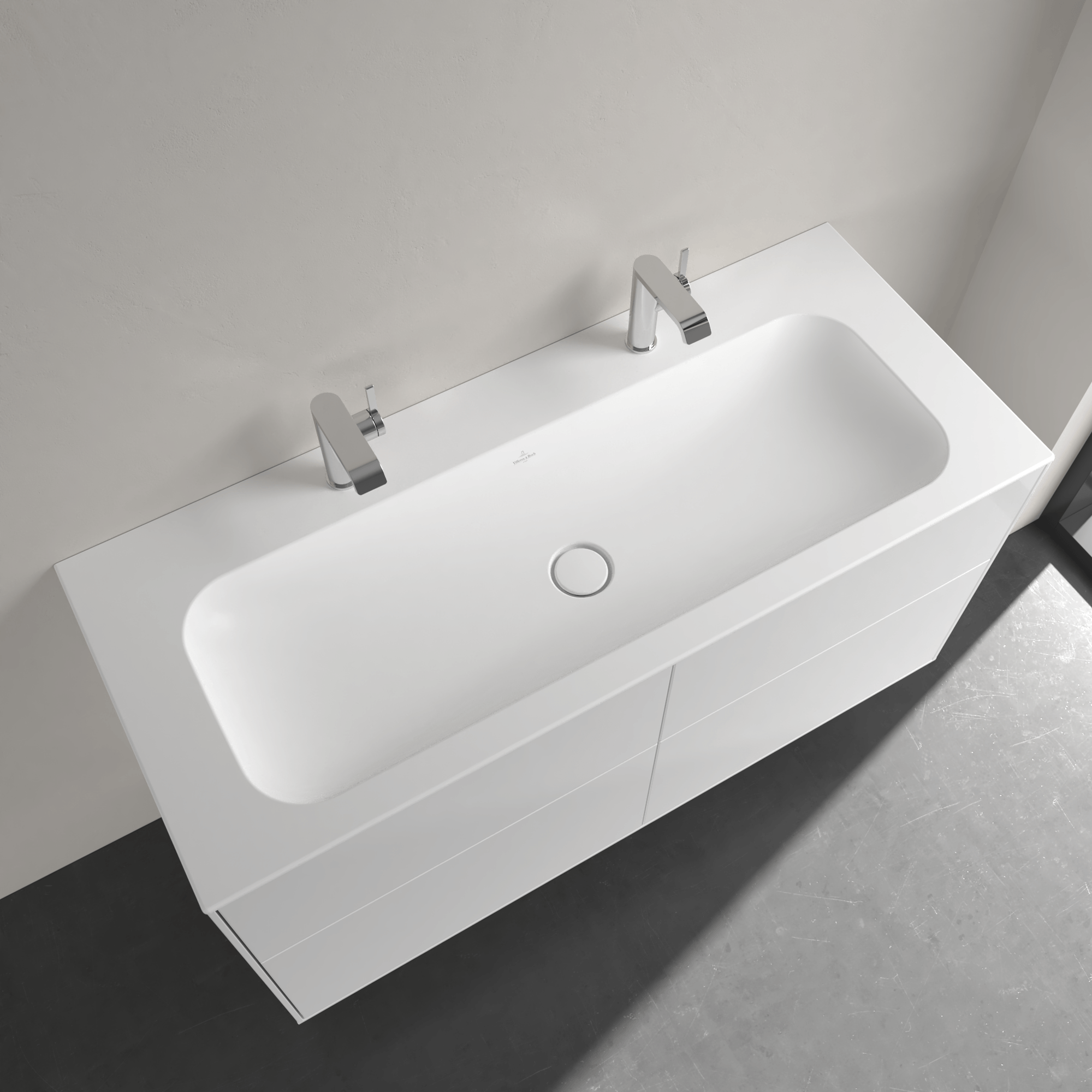 Villeroy & Boch 福朗 梳洗盆, 1200 x 500 x 160 mm, 石白色 CPlus|易洁釉面, 无溢水孔, 未抛光