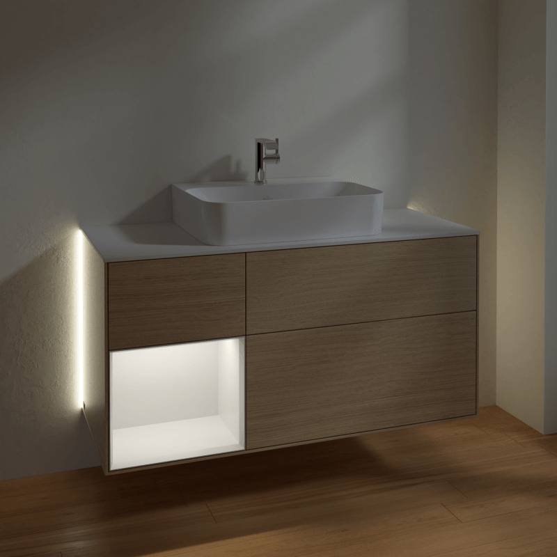 Villeroy & Boch 福朗 梳洗柜, 含照明, 3 个拉出式隔室, 1200 x 603 x 501 mm, 单板橡木 / 牡丹红哑光漆
