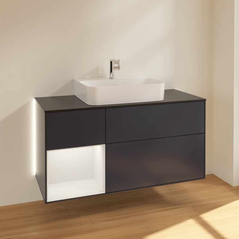 Villeroy & Boch 福朗 梳洗柜, 含照明, 3 个拉出式隔室, 1200 x 603 x 501 mm, 子夜蓝哑光烤漆 / 牡丹红哑光漆
