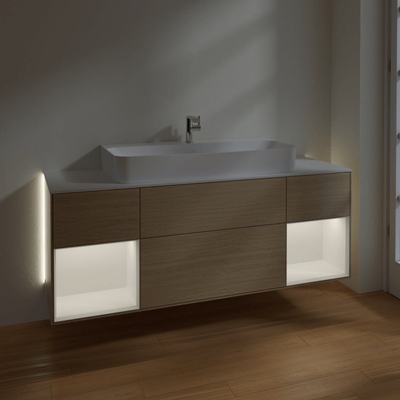 Villeroy & Boch 福朗 梳洗柜, 含照明, 4 个拉出式隔室, 1600 x 603 x 501 mm, 单板橡木 / 白色哑光漆