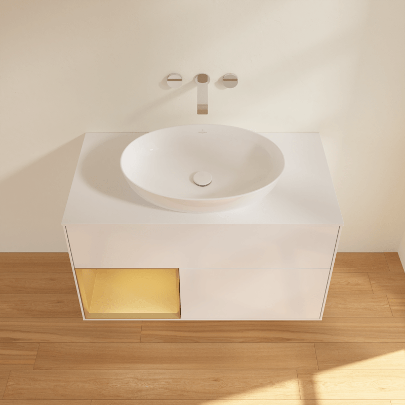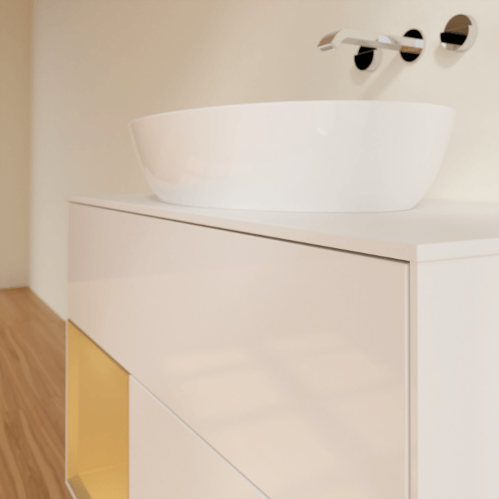 Villeroy & Boch 福朗 梳洗柜, 含照明, 2 个拉出式隔室, 1000 x 603 x 501 mm, 白色亮面漆 / 金色哑光漆