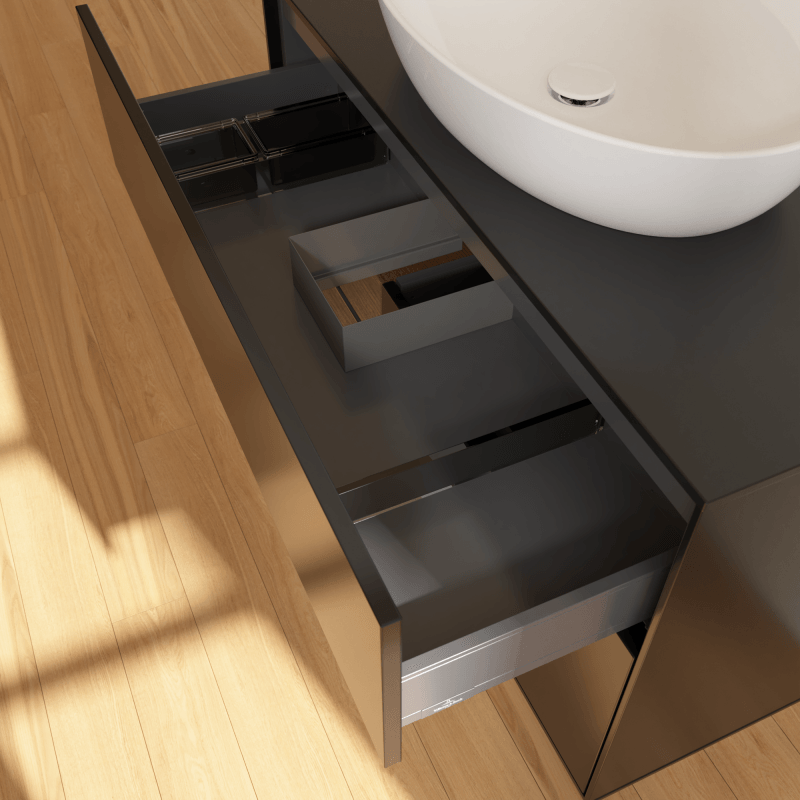 Villeroy & Boch 福朗 梳洗柜, 含照明, 2 个拉出式隔室, 1000 x 603 x 501 mm, 黑色哑光漆 / 胡桃木单板